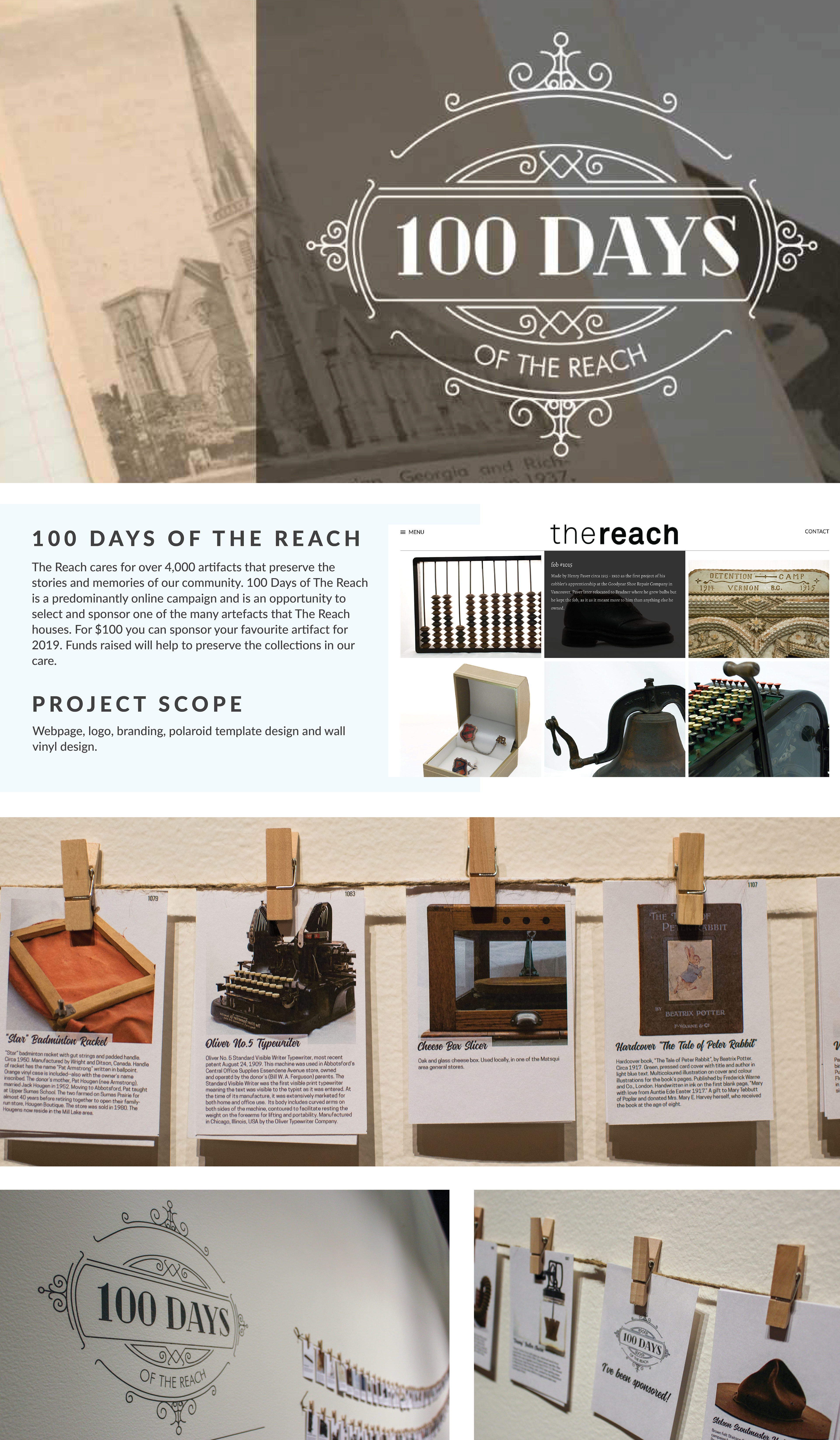 Branding for The Reach Gallery Museum Abbotsford's 100 Days online fundraising campaign.