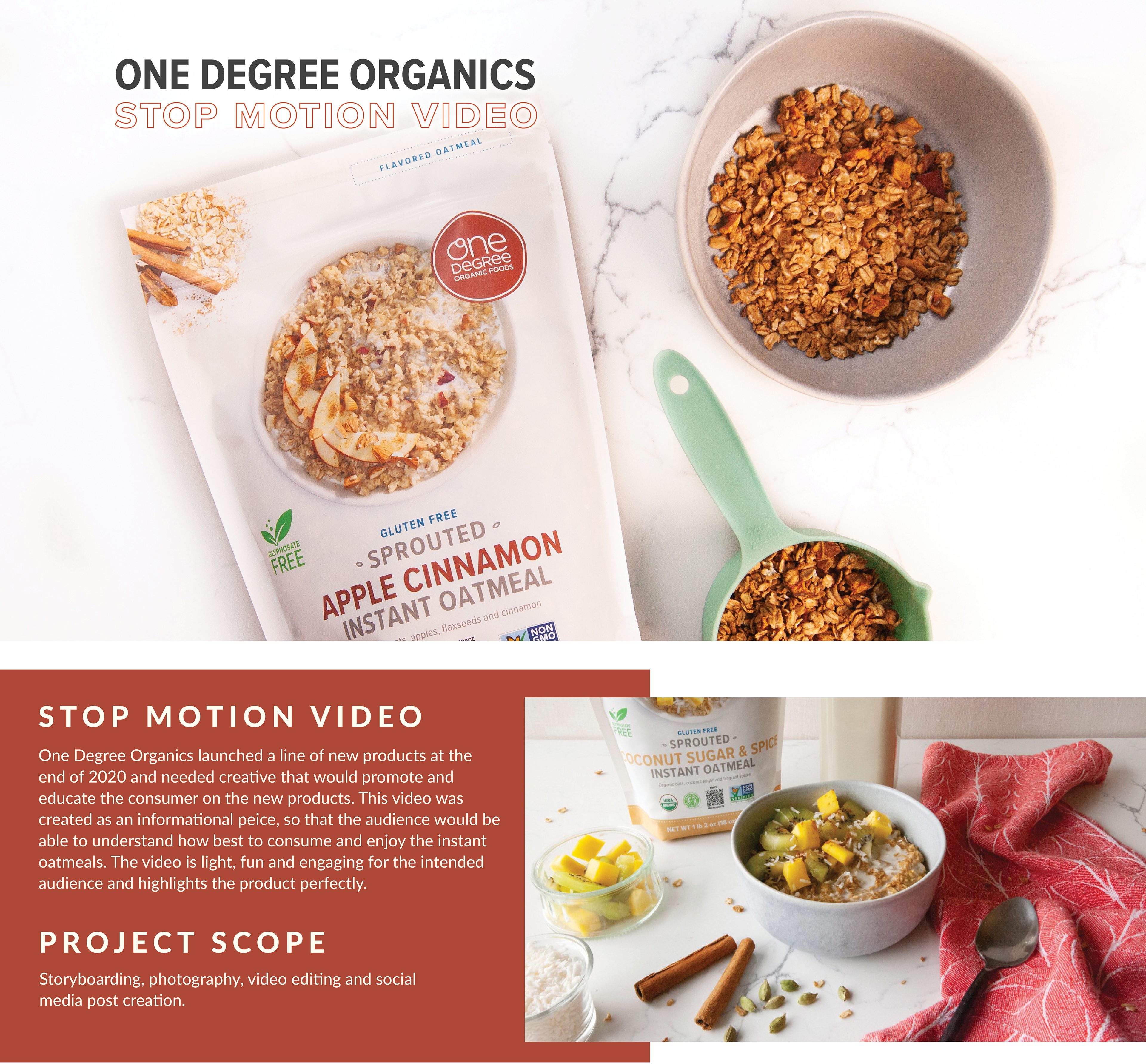 A promotional and informational stop motion video used to promote the new line of Instant oatmeals for One Degree Organics.